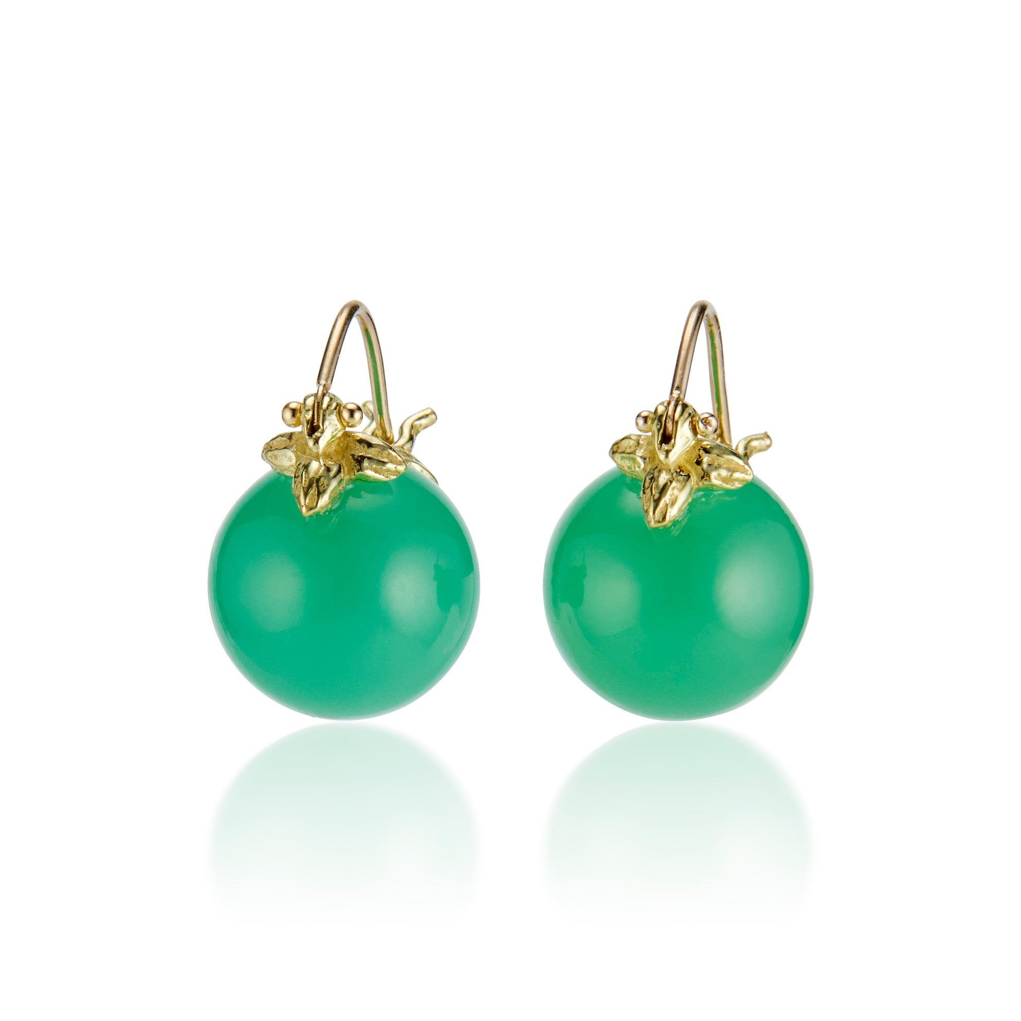 Petite yet captivating, these 11mm chrysoprase Flyer earrings showcase the stone's luminous apple-green hue in polished perfection. held by 18k gold Flyer settings, they deliver understated elegance with enduring brilliance—a refined choice for everyday sophistication or special occasions.